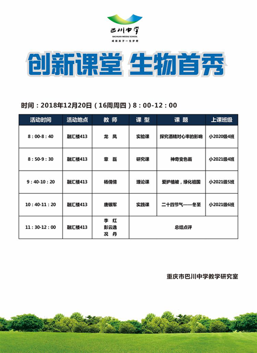 ——重慶市巴川中學校首屆生物好課展示活動 2018年12月20日,在冬至到來之際