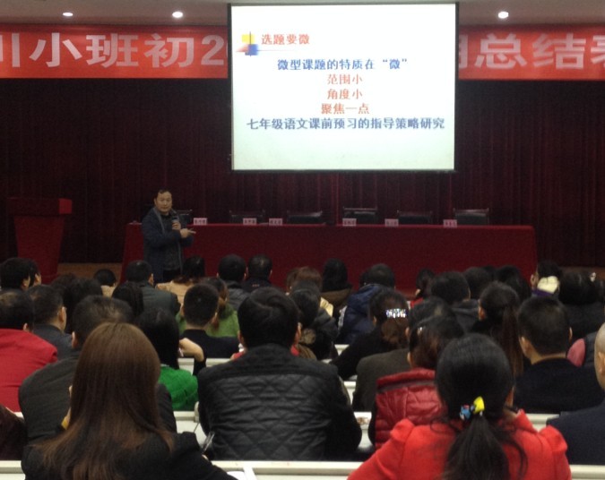 會議由學(xué)校分管教育科研的宗和才副校長主持,各年級各部門分管副校長、學(xué)區(qū)主任、各處室負(fù)責(zé)人、各學(xué)科組組長及本期已申報(bào)微型課題的主研人員共200多人參加了專題會。本次會議共分四個(gè)議程: