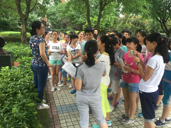 活動(dòng)中,2017級(jí)語文教師兼學(xué)校教師宣傳隊(duì)成員王宜老師帶領(lǐng)大家從校門口到讀書廣場(chǎng)進(jìn)行游覽,并為同學(xué)們?cè)敿?xì)介紹了學(xué)校基本情況:校門口的九龍爭(zhēng)奇,讀書廣場(chǎng)的地理園詳情,狀元橋的來歷……同學(xué)們一邊認(rèn)真聽著講解,一邊仔細(xì)做著筆記,時(shí)不時(shí)感慨平日里走過無數(shù)次的校園原來玄機(jī)暗藏。一路走來,此時(shí)的校園儼然變成了最熟悉的陌生人,令大家欣喜不已。