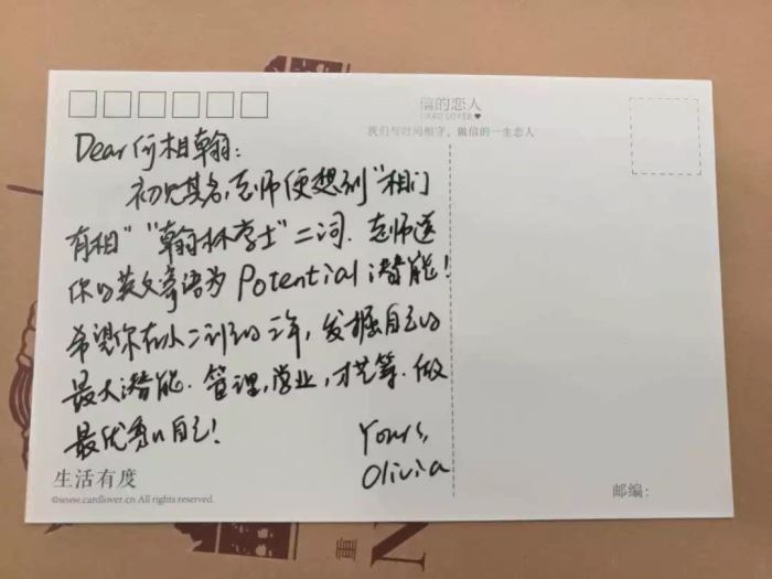 走進教室,發現我的新座位上,張貼著老師們手寫的對于我名字的解讀,那一刻,我似乎更加明白了父母的用心良苦。