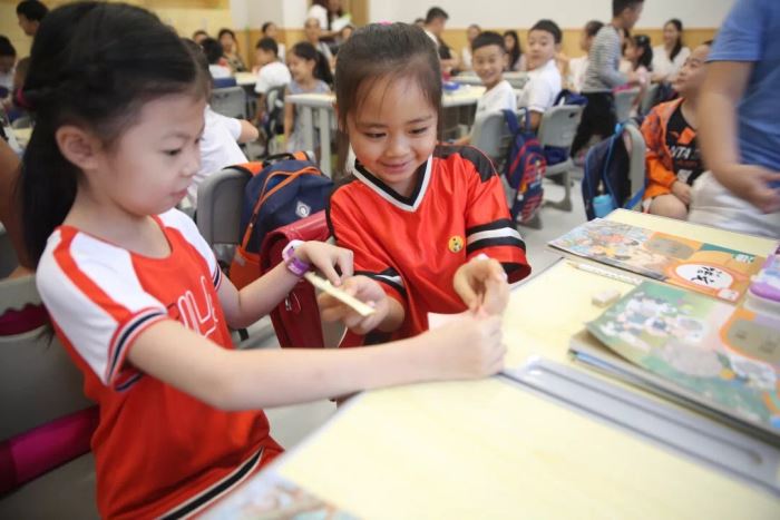 今天,牛頓班和國際班的大哥哥、大姐姐們一大早就來到校門口,迎接學弟學妹們的到來。