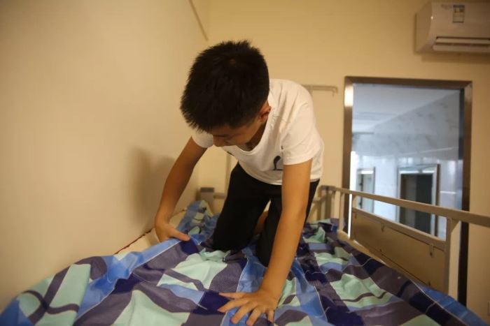 布置寢室,沒有在怕的。班會課上老師剛說了,“以后,自己的事情自己做,父母的事情幫著做。”