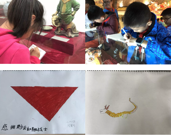 高學(xué)段孩子記錄著、抒發(fā)著心得感想,低學(xué)段孩子則畫出了心中紅領(lǐng)巾和銅梁龍的模樣。