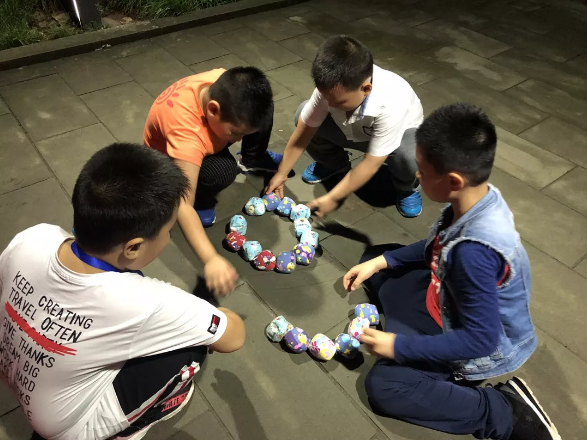 夜幕下,正在進行著充滿童趣的晚間活動。