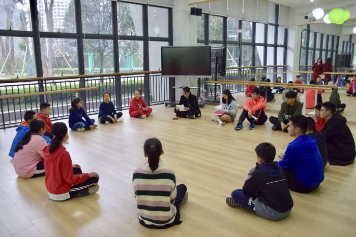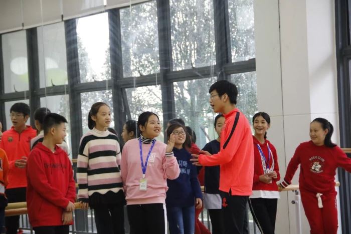戲劇組的指導(dǎo)老師是國(guó)際精英班的Erica老師和Sicily老師,2020級(jí)的梁皓南同學(xué)和2021級(jí)的陳宗吉,顏以林,劉滟鈞同學(xué)是四位小導(dǎo)師。參加戲劇工坊的同學(xué)們?cè)谛?dǎo)師的帶領(lǐng)下首先進(jìn)行了“真的假的”,“我們是一個(gè)圓”,“共同進(jìn)退”和“雕塑”等破冰游戲,了解彼此的同時(shí)也感受到多方式溝通和團(tuán)隊(duì)合作的重要性,也在表演中學(xué)會(huì)對(duì)他人擁有同理心。正在接受美聲專業(yè)訓(xùn)練的顏以林同學(xué)還帶大家進(jìn)行了呼吸調(diào)整和發(fā)聲訓(xùn)練。最后,小導(dǎo)師們指導(dǎo)同學(xué)們分組進(jìn)行角色分工,排練自己的小劇場(chǎng)并向大家表演展示。