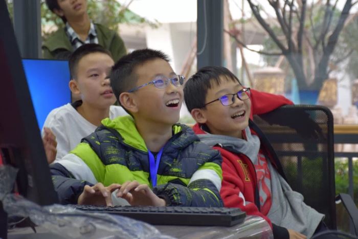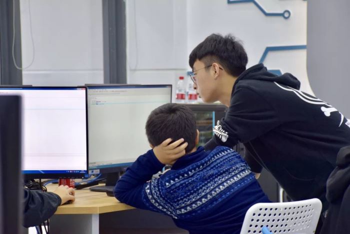 編程聽(tīng)起來(lái)好像離學(xué)生們很遙遠(yuǎn),但計(jì)算機(jī)工坊的同學(xué)們?cè)诖舜位顒?dòng)中僅僅用兩小時(shí)的時(shí)間就創(chuàng)造出了自己的小游戲。研究生畢業(yè)于加拿大滑鐵盧大學(xué)的Rui是這次計(jì)算機(jī)工坊活動(dòng)的指導(dǎo)老師,她也是國(guó)際精英班A-LEVEL數(shù)學(xué)老師兼計(jì)算機(jī)競(jìng)賽指導(dǎo)。2020級(jí)的張瑞揚(yáng),劉宇釗同學(xué)和2021級(jí)的李昭睿同學(xué)是三位小導(dǎo)師,他們平時(shí)對(duì)計(jì)算機(jī)語(yǔ)言和編程就相當(dāng)感興趣,在活動(dòng)中用簡(jiǎn)單易懂的語(yǔ)言向同學(xué)們介紹基礎(chǔ)的代碼語(yǔ)言該怎么寫(xiě),并一步步指導(dǎo)同學(xué)們用代碼創(chuàng)建出場(chǎng)景和人物動(dòng)作,最后整合成為完整的小游戲。