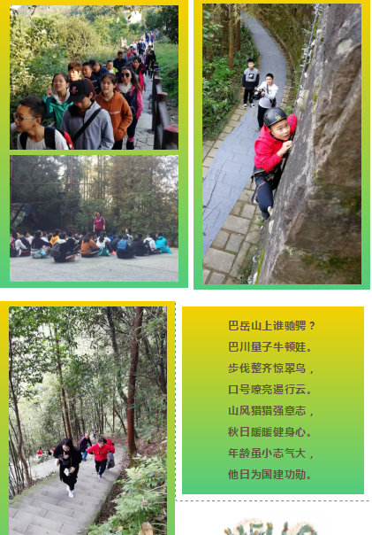 ???????有一種夢想,是與巴岳山的秋天偶然邂逅;有一種夢想,是父母與孩子的美好相遇;有一種夢想,是沿著既有的足跡努力追尋。11月3日,重慶巴川量子中學2021級牛頓班的師生和家長,在銅梁區巴岳山風景區開展了主題為“追尋夢想足跡”的親子活動。