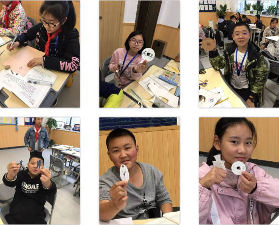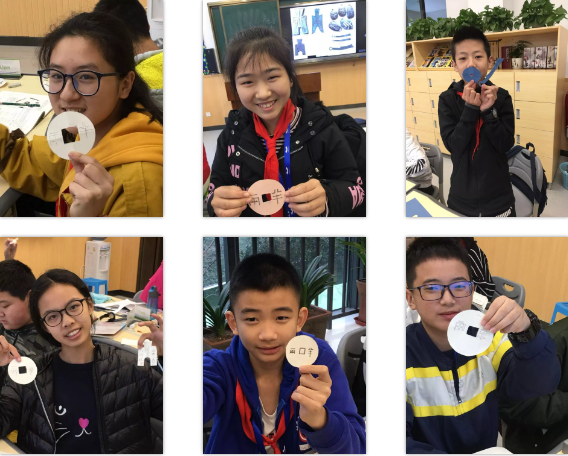 孩子們認真觀察圖片,貨幣的形制、顏色、文字,哪怕是磨損的痕跡也不放過,描畫、上色、剪裁、修邊,完成了不同形制的貨幣,在動手中學習知識,在實踐中感知古人的智慧。