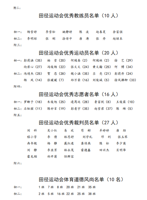 附四:優(yōu)秀教練員名單;附五:優(yōu)秀裁判員名單;附六:體育道德風(fēng)尚獎名單)
