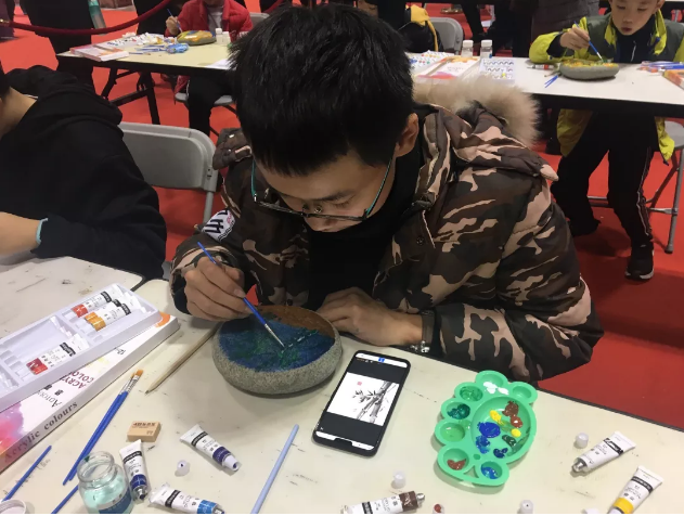上周六,鐘昊然的媽媽唐薇還特別組織班上同學參加了第十一屆中國(重慶)萬石博覽會。大家在現場不僅觀賞到各種奇珍異石,更是體驗了一把在石頭上作畫的趣味,讓藝術審美細胞在點滴浸潤中得到滋養。