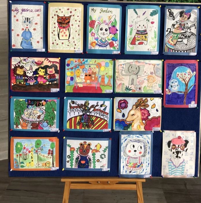 ??美術(shù)課教孩子們畫自己最喜歡的動物??