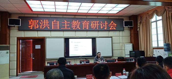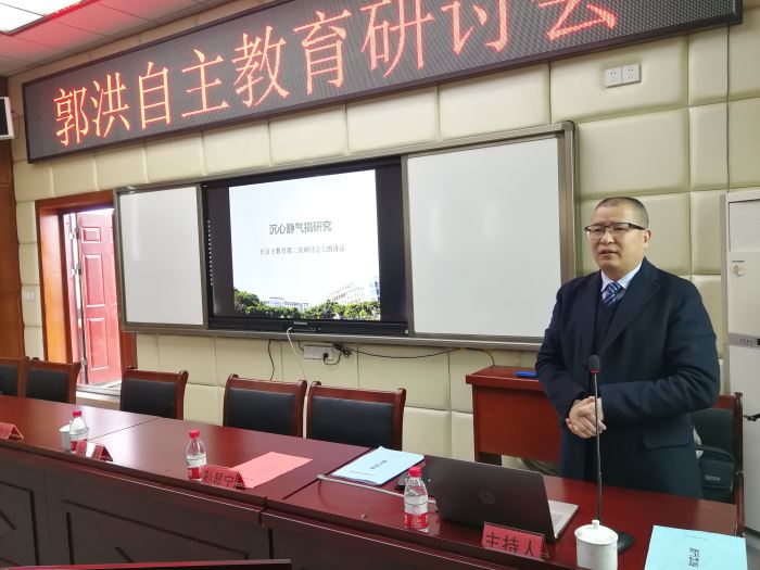 銅梁區大廟中學羅國強校長代表學校對參會的各位領導和老師表示歡迎,他從宣傳發動、理論學習、課題研究等方面介紹了大廟中學在自主教育工作上所做出的努力及取得的成果。他表示學校在自主教育實踐中嘗到了甜頭,2019年他們將繼續探索和勇于嘗試,讓自主教育在大廟中學生根發芽。