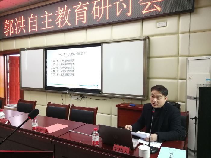 新年伊始,萬象更新,新學期剛開學幾天,“郭洪自主教育工作室”的工作便已拉開序幕。2019年2月28日,“郭洪自主教育工作室”第二次研討會在銅梁區大廟中學成功召開。銅梁區委教育工委委員、考試中心主任張曉利,教委組織人事科科長孫顯寧、基礎教育科科長王志鴻、德體衛藝科科長侯有華、“郭洪自主教育工作室”主持人郭洪及工作室成員參加了會議。本次研討會還吸引了四川天寶中學、重慶秀山育才中學的領導和老師慕名前來觀摩學習。