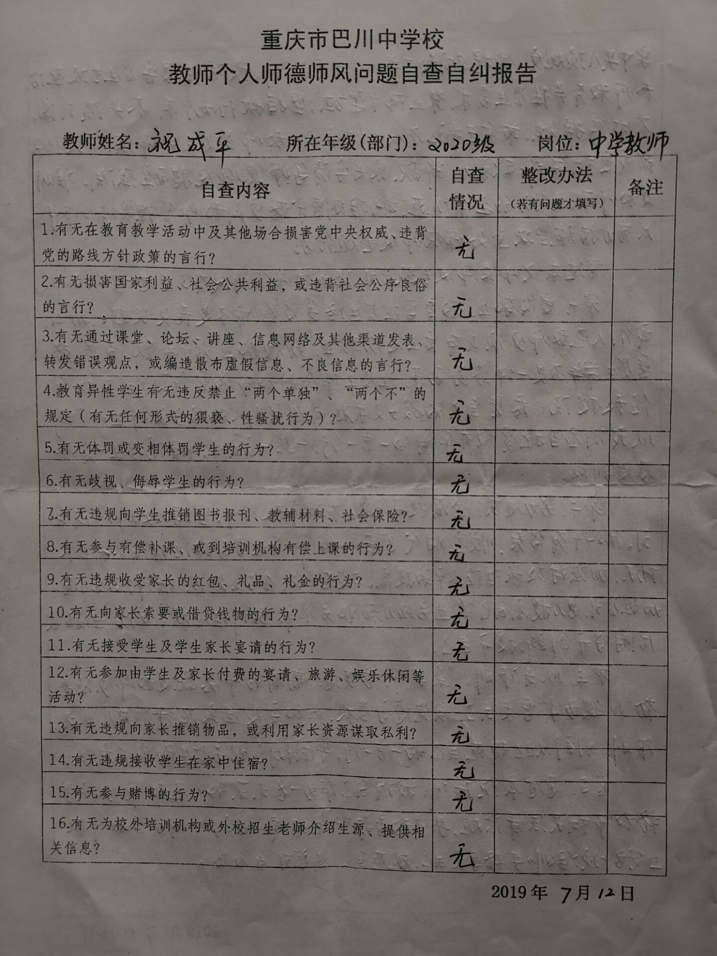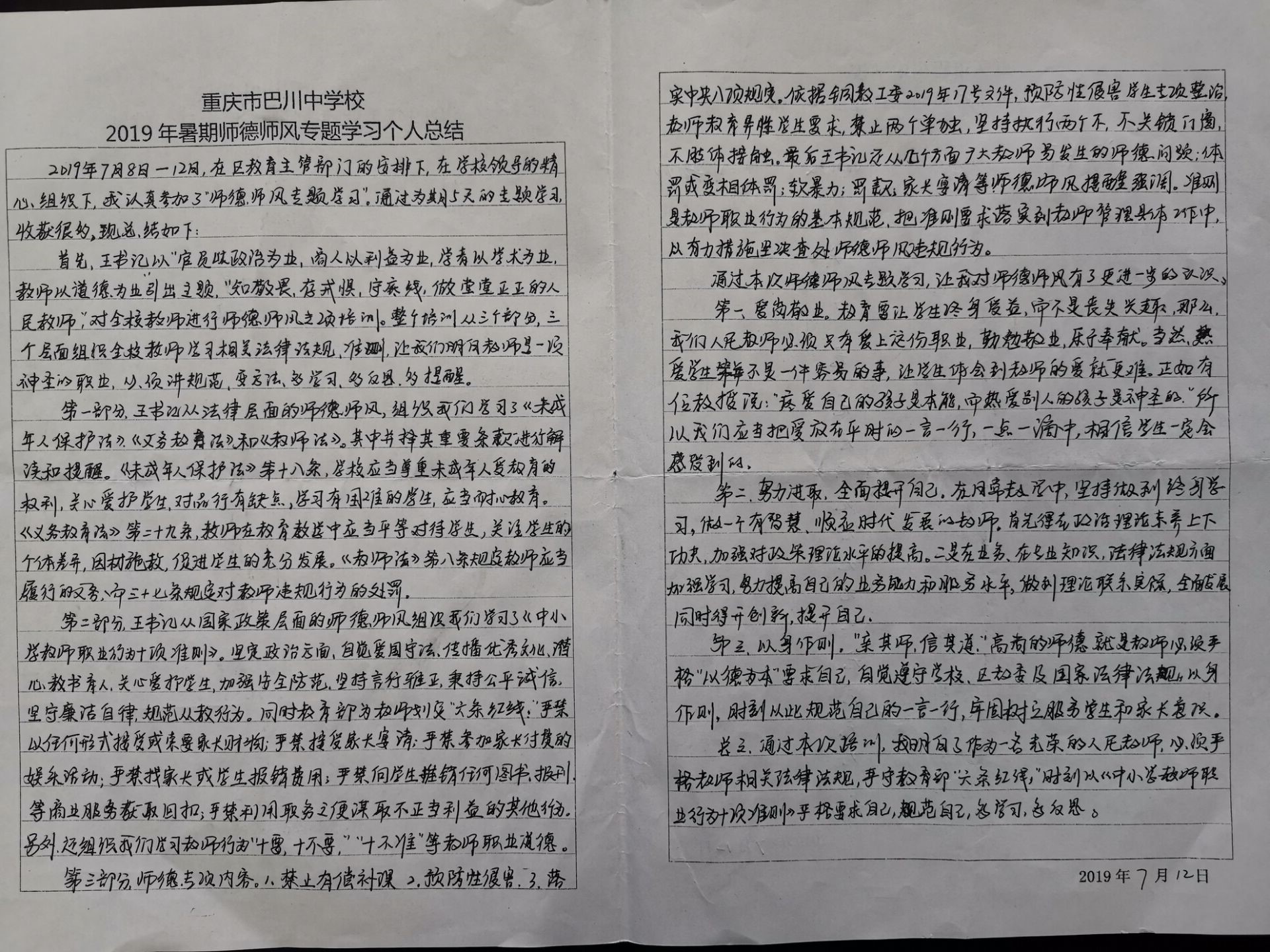 ——記重慶市巴川中學校2019年暑期師德師風集中學習工作