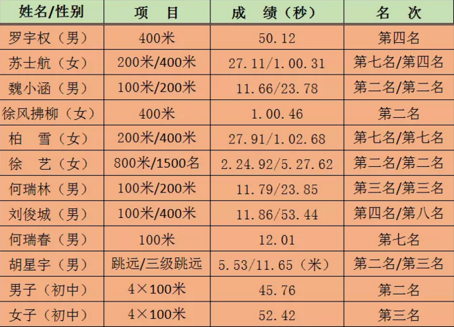 另外,隊(duì)員們在各項(xiàng)比拼中還榮獲了7塊銀牌,4塊銅牌,4-8名10人次。優(yōu)異的成績可謂是大放異彩,充分展示出了巴川田徑隊(duì)的綜合實(shí)力與競技水平,體現(xiàn)了隊(duì)員的團(tuán)隊(duì)精神和個(gè)人風(fēng)采,與此同時(shí),也為他們的未來發(fā)展開辟出了更多精彩而有效的路徑。