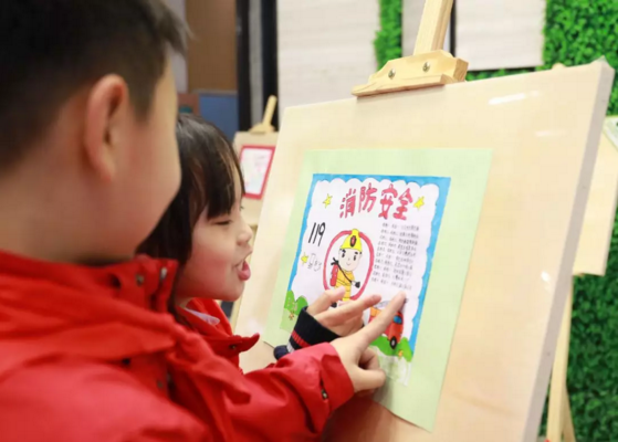 這些消防的科普知識,如何在日常的學習中教學,這是巴川量子“消防主題教育周”重點解決的問題:量子吉祥物“小斑”戴上了消防帽,出現(xiàn)在普朗克樓的消防展板上;晨讀時間,全校學生都在學習消防“三字經(jīng)”;班會課上,通過視頻資料了解消防的“黑科技”;消防員、消防車、消防栓成為了美術課上的學習主題……