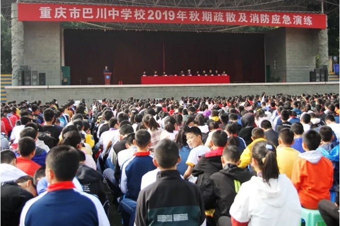 重慶市巴川中學2019年秋期疏散及消防應急演練現場