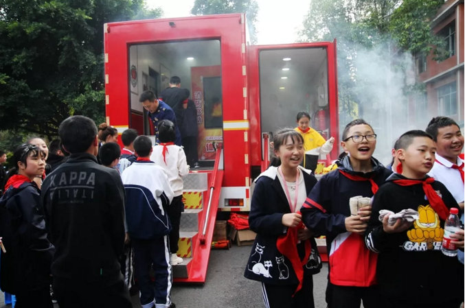 師生們“親臨火場”,登上消防車參觀學習