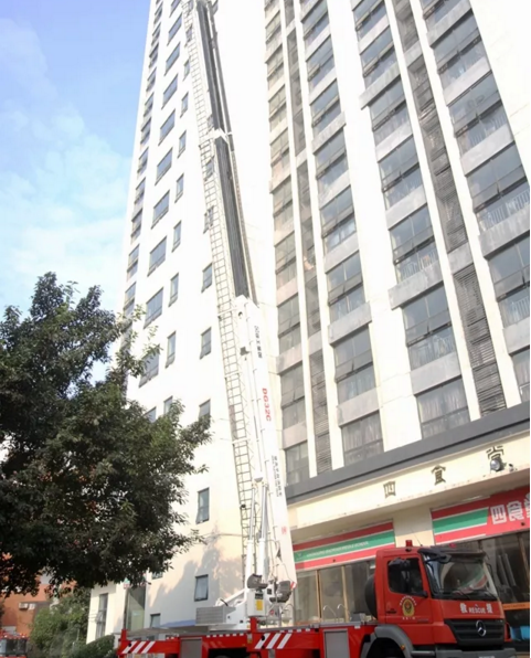 消防車展開云梯,高度直逼新高中宿舍樓