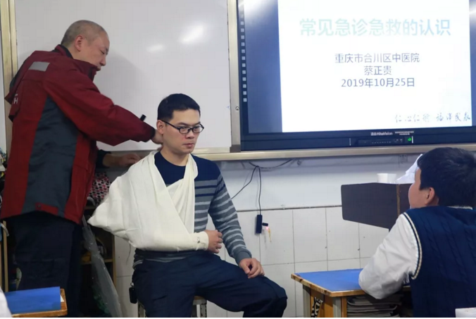 與此同時,巴川中學2021屆志行3班也在近日的“家長課堂”活動上,邀請到學生蔡依錦的父親、合川區中醫院急救領域專家蔡正貴先生及其團隊,前來為孩子們上了挽救生命的“深動一課”。