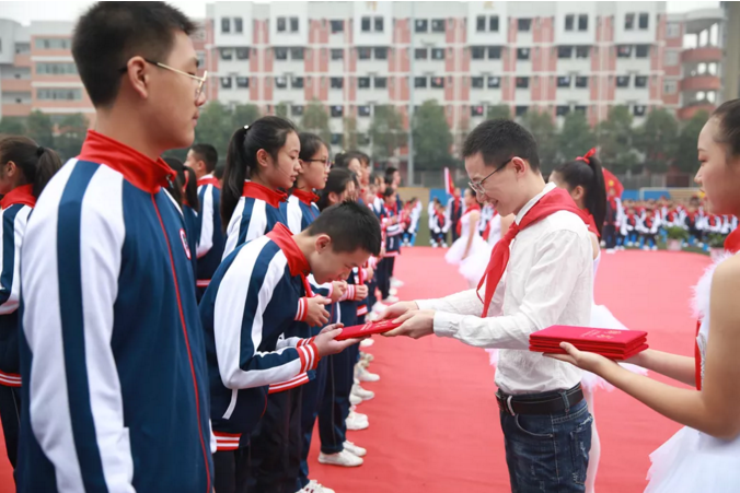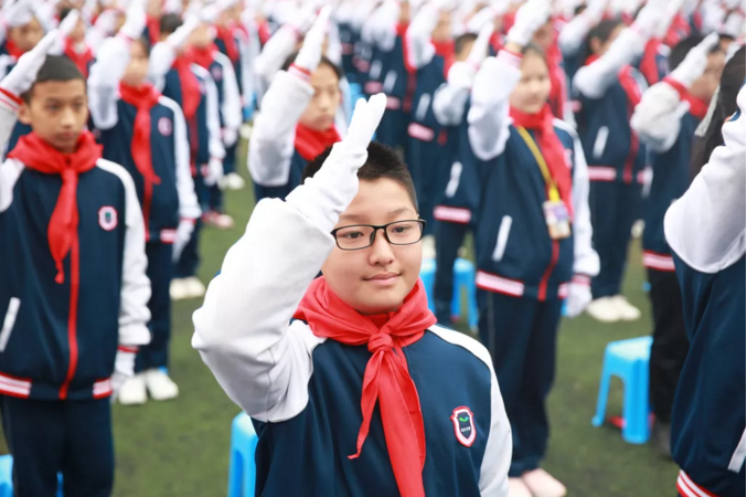 一聲令下,所有少先隊(duì)員換戴上了“大號(hào)”紅領(lǐng)巾、重溫入隊(duì)誓詞,他們知道,紅領(lǐng)巾變大了,肩上的責(zé)任也變大了。
