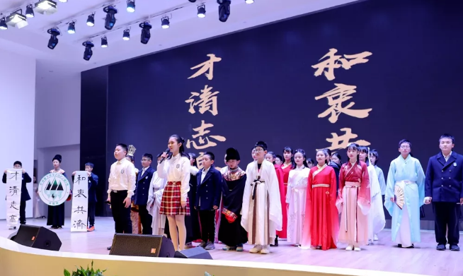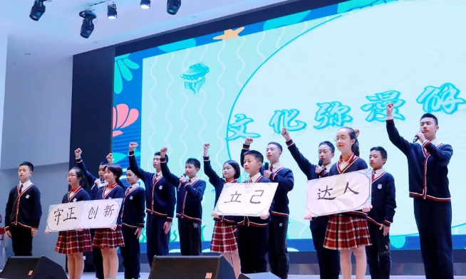 逐夢(mèng)10班以夢(mèng)為馬,展開了“量子金馬獎(jiǎng)”的角逐;傲洋5班乘坐著傲洋號(hào)揚(yáng)帆起航,依靠團(tuán)隊(duì)力量,戰(zhàn)勝風(fēng)暴;國際班通過一場(chǎng)中西合璧的知識(shí)競賽詮釋何為“中國靈魂,世界眼光”。振翼6班破繭成蝶、景行9班書院招賢,志遠(yuǎn)4班匠心筑夢(mèng)……一班一文化,一班一世界,12個(gè)“成長與夢(mèng)想”的故事被孩子們出色演繹,展現(xiàn)出他們寬闊的視野和靈動(dòng)的表現(xiàn)力。