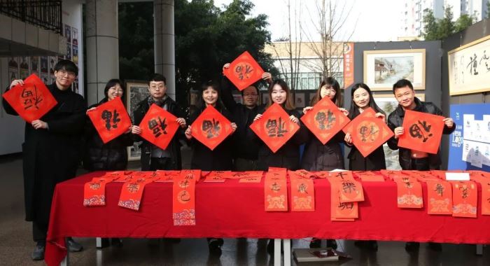 延續師生迎新書畫展的傳統,每年都有師生寫春聯、送福字的規定動作,今年依然邀請初高中擅長書法的同學和老師們一起揮毫,為大家準備了數百副春聯和福字,等待著大家去挑選。一副副紅彤彤的春聯、飽蘸濃墨的福字映紅了活動現場,也映出了老師和同學們迎接新年的喜悅。