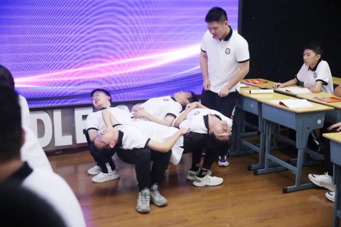 巴川新高中戴霽煒老師的《團結協(xié)作,共生依存——人體座椅之研究》巧設四人合作,構造人體座椅活動,讓同學們得到了合作的重要啟示: