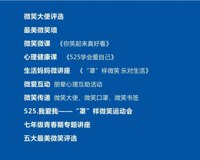 心理健康課上同學們繪制專屬的“微笑”口罩,微笑大使組成微笑小組,將“微笑口罩”贈送給老師、同學、保安叔叔、保潔阿姨,還有食堂的叔叔阿姨和生活媽媽們,幸福的笑容洋溢在他們的臉上,也流淌到同學們的心里。在參與中,同學們更深地感受到微笑是人際溝通最美的語言,即使疫情反撲,也不能讓口罩遮住我們的笑臉。