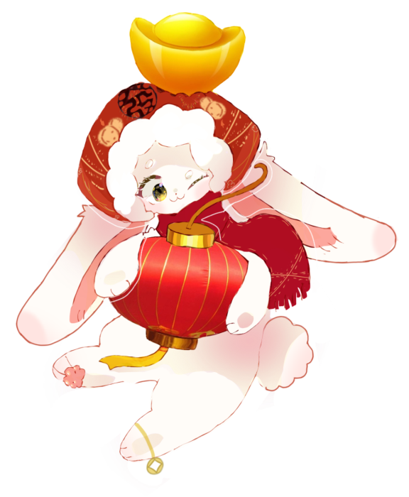 初2023屆鵬1班唐詩棋同學的兔子形象就有很多自己的獨特審美,甚至給人一種滑稽搞怪的感覺,盡管也是頭戴醒獅帽,身著對襟衣,手拿春聯(lián),但兔子的形象卻和傳統(tǒng)的中國審美有些不合拍,在和指導老師溝通后,最終呈現(xiàn)的是一只更加擬人化的、快樂調(diào)皮的小白兔形象,強化Q版的造型看起來更加呆萌可愛。由它裝點的福貼和紅包一經(jīng)面世,便受到老師和同學們的熱烈追捧,可見大家更喜愛兔子可可愛愛的固有形象。