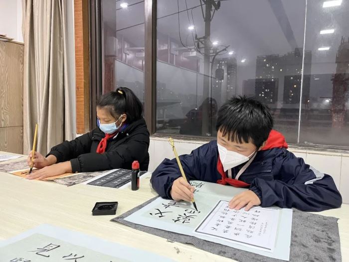 每年迎新書畫展的固定項目都有春聯(lián)送祝福,今年在疫情影響下的校園生活更需要有一抹喜慶的中國紅來裝點。