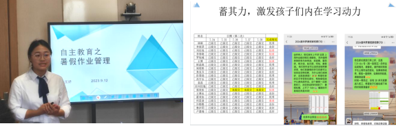 隨后,南城巴川學校的張國嬌老師則從任課教師的角度,分享了暑假作業管理的實踐經驗和心得體會。一是定其向,自主規劃暑假作業明確學習方向,同時分享了學生的英語讀記習慣的改變和精彩的暑期英語VLOG作品。二是蓄其力,激發孩子們內在學習動力。通過即時的反饋,不斷地激勵,學生的英語學習進步看得見。