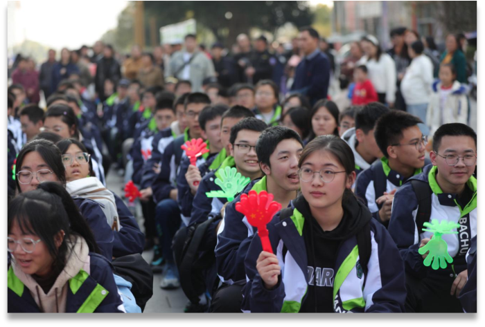 高中部專(zhuān)場(chǎng)在主持詞的打磨上大量收集資料,尋找宣傳新高中的切入點(diǎn),以“五百”工程,架構(gòu)全新育人模式為宣傳點(diǎn),傳遞新高中的優(yōu)秀做法,突出整體優(yōu)秀,優(yōu)勢(shì)突出,高考100%上重本,雙一流大學(xué)錄取率年均91%,在巴川中學(xué)新高中成就孩子一生的夢(mèng)想!