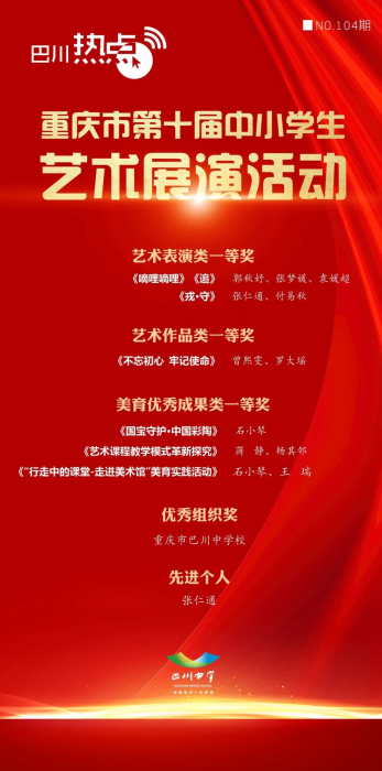 在對的時間,對的地點,我們總可以看見孩子的耀眼奪目。就如在剛剛過去的“重慶市第十屆中小學生藝術展演活動”中,巴川的孩子榮獲了多個一等獎。