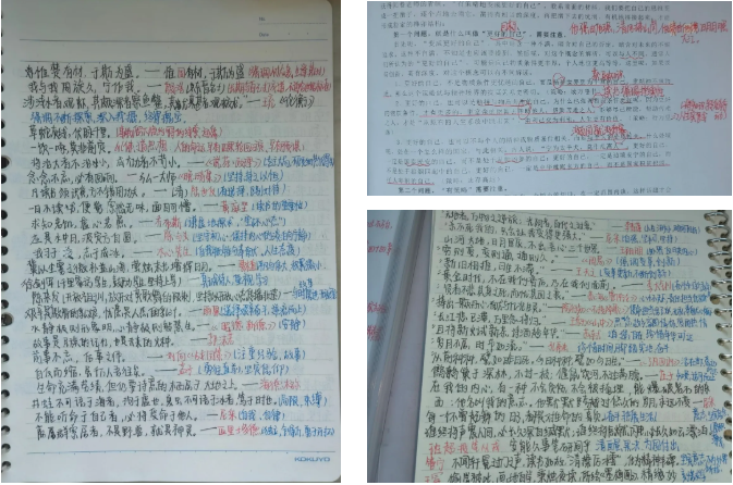 漸漸地,她摸索出了自己的讀書方法:先在網(wǎng)上查閱書籍背景,再精讀標(biāo)注,理解書本里的語(yǔ)言運(yùn)用,最后整理金句和人物素材。這些方法讓她在寫議論文的時(shí)候有取值不經(jīng)的人物素材,也讓她的文章在滿分60分的情況下時(shí)常可以拿到56分。